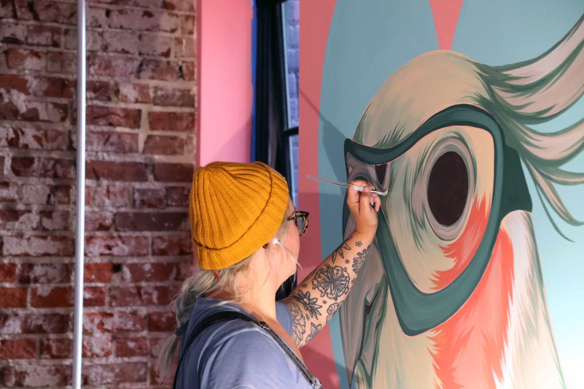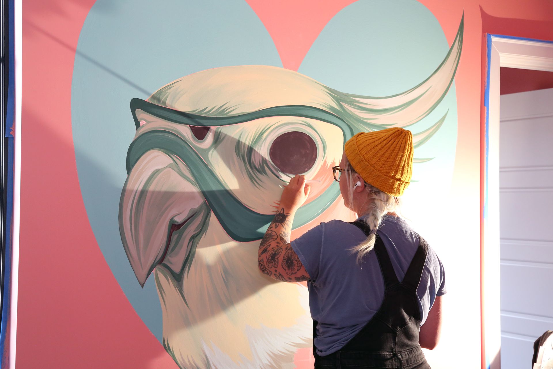 Alexandrea Pangburn (she/her) is a Golden, CO based artist/muralist focusing her work on the conservation and realistic representation of wildlife. Originally from Lexington, KY; she grew up with a deep love and respect for animals, her work focuses on the conservation and education of birds, mammals, plants, florals and the connection to the location in which they are painted. Alex loves to paint large scale as well as small scale for galleries and private commissions.