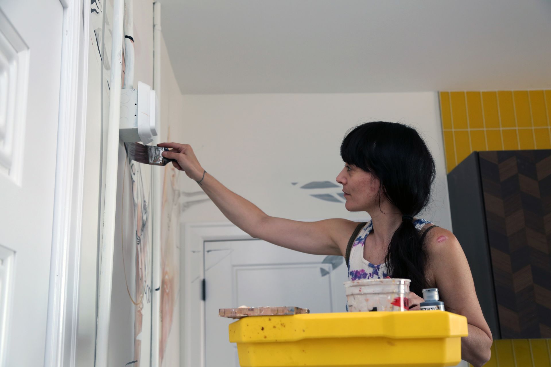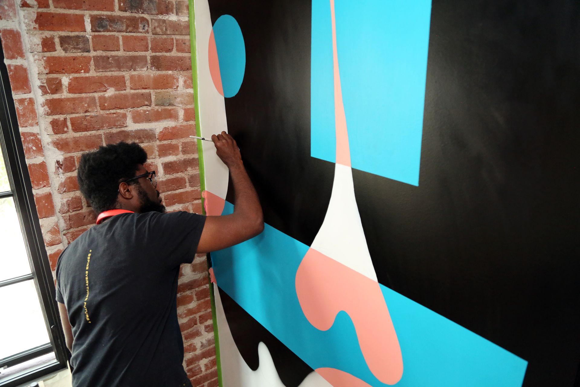 Romelle is an abstract painter and mural artist hailing from Detroit and based in Mexico City. Her colorful, energetic work explores modalities of healing with color, and the connection the artist has to the cities in which she’s lived. A period of time spent in Detroit marked Romelle’s introduction to the rigor of the studio, and inspired her 2016 solo show “Through Healing,” where Romelle used new materials to explore how art can heal on a personal and community scale, during her residency at Ponyride Detroit.