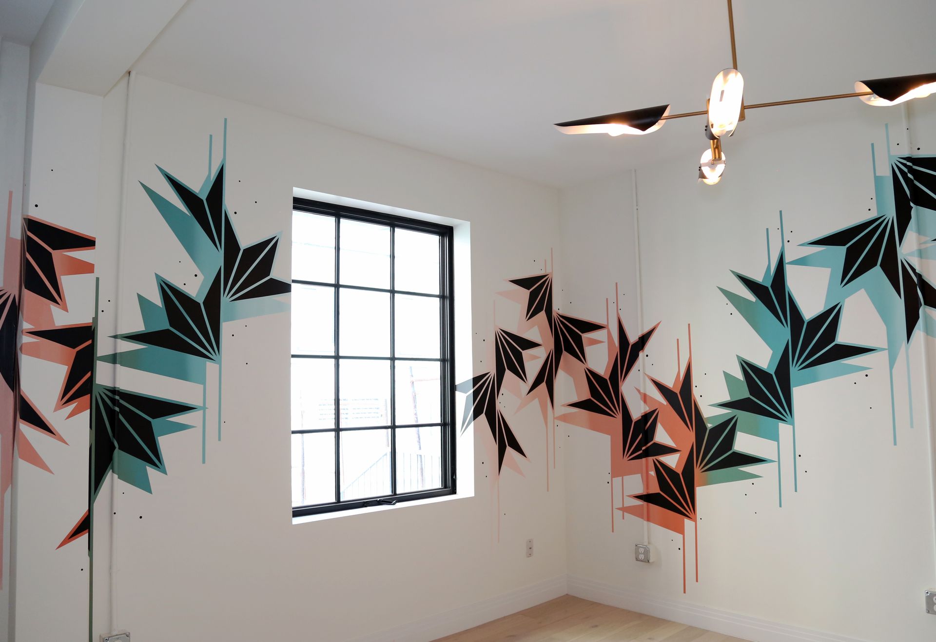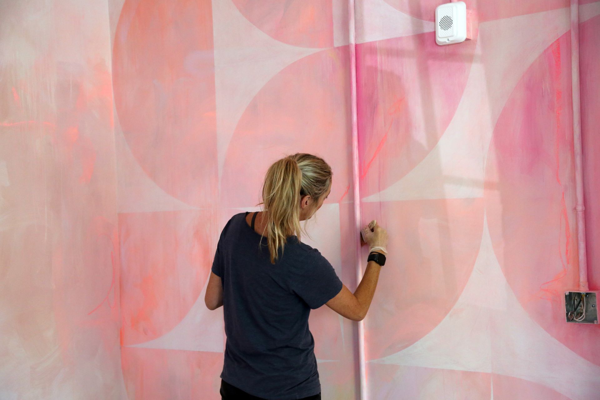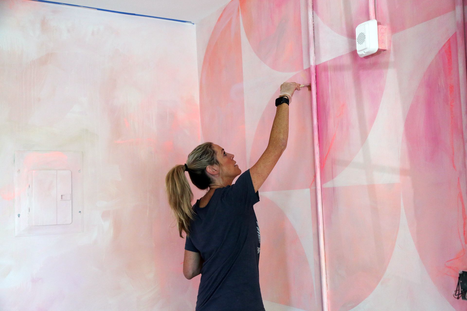 Known for her iconic, abstract geometric style, artist Sandra Fettingis creates timeless, site-specific patterns for public art projects such as murals and installations across the nation. Her elegant, harmonious works thoughtfully integrate art with the surrounding built and natural environments. She combines a careful study of a location and its social fabric with creative problem solving to generate meditative yet dynamic patterns often nodding to plant life with keen attention to detail and craftswomanship.