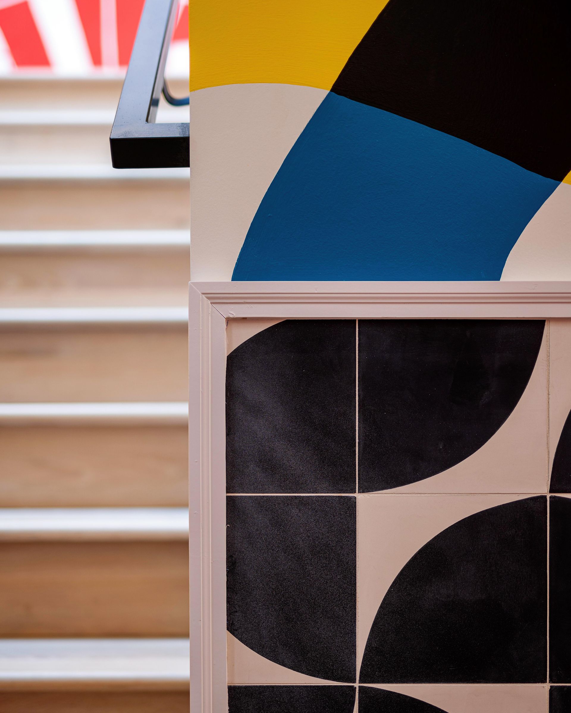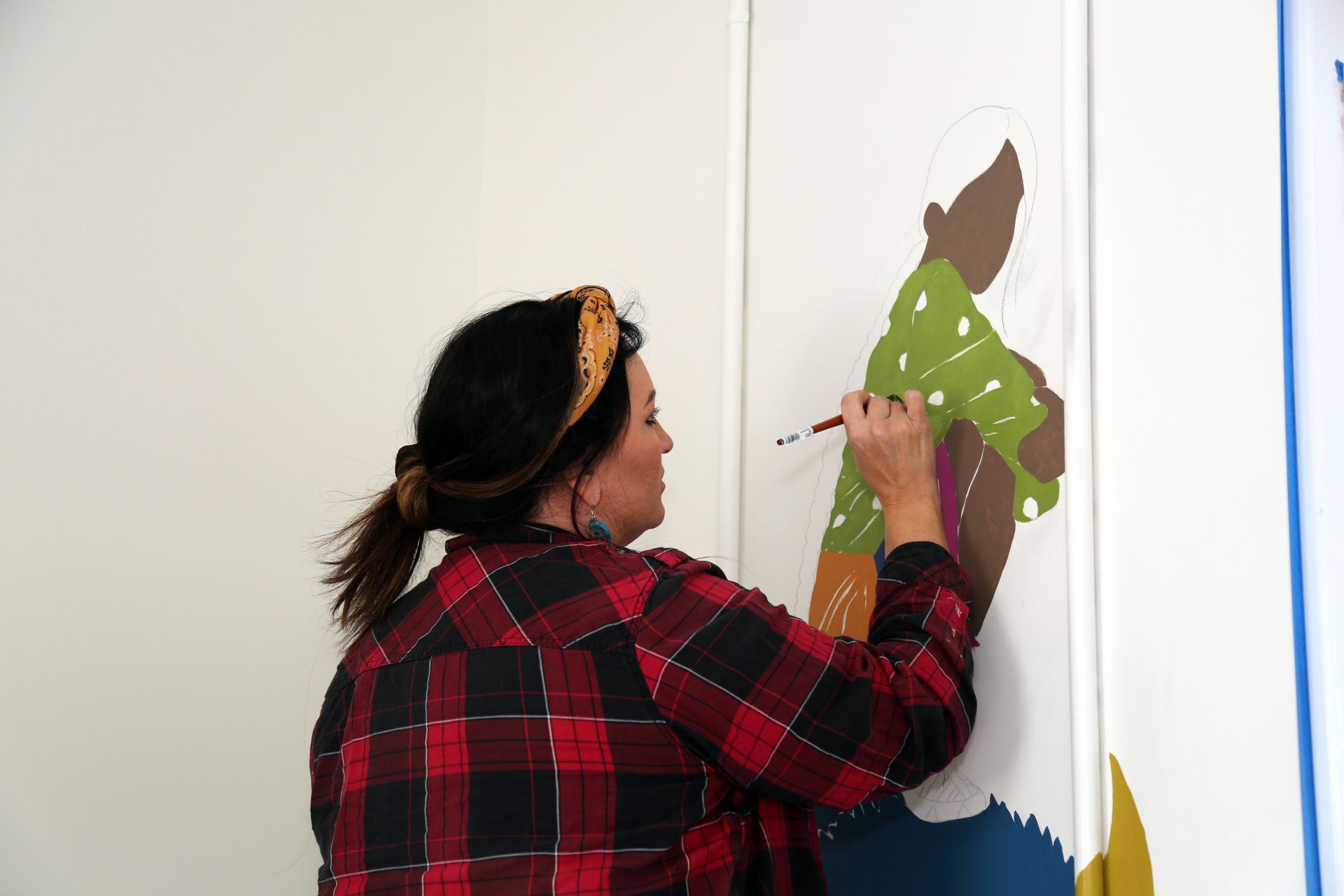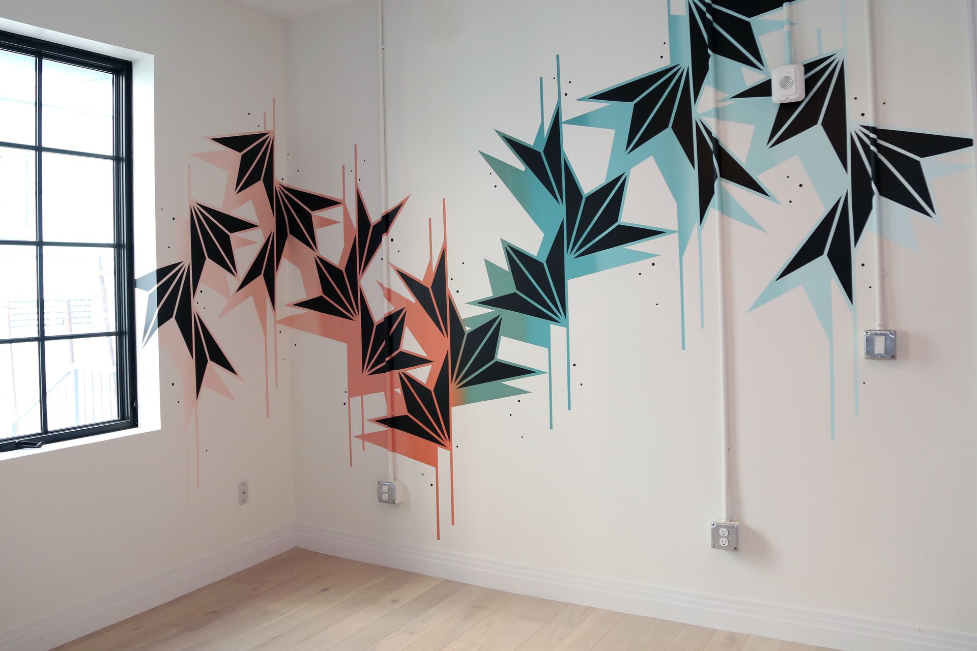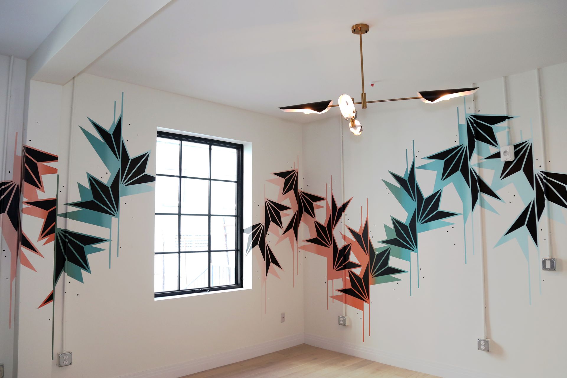 Known for her iconic, abstract geometric style, artist Sandra Fettingis creates timeless, site-specific patterns for public art projects such as murals and installations across the nation. Her elegant, harmonious works thoughtfully integrate art with the surrounding built and natural environments. She combines a careful study of a location and its social fabric with creative problem solving to generate meditative yet dynamic patterns often nodding to plant life with keen attention to detail and craftswomanship.