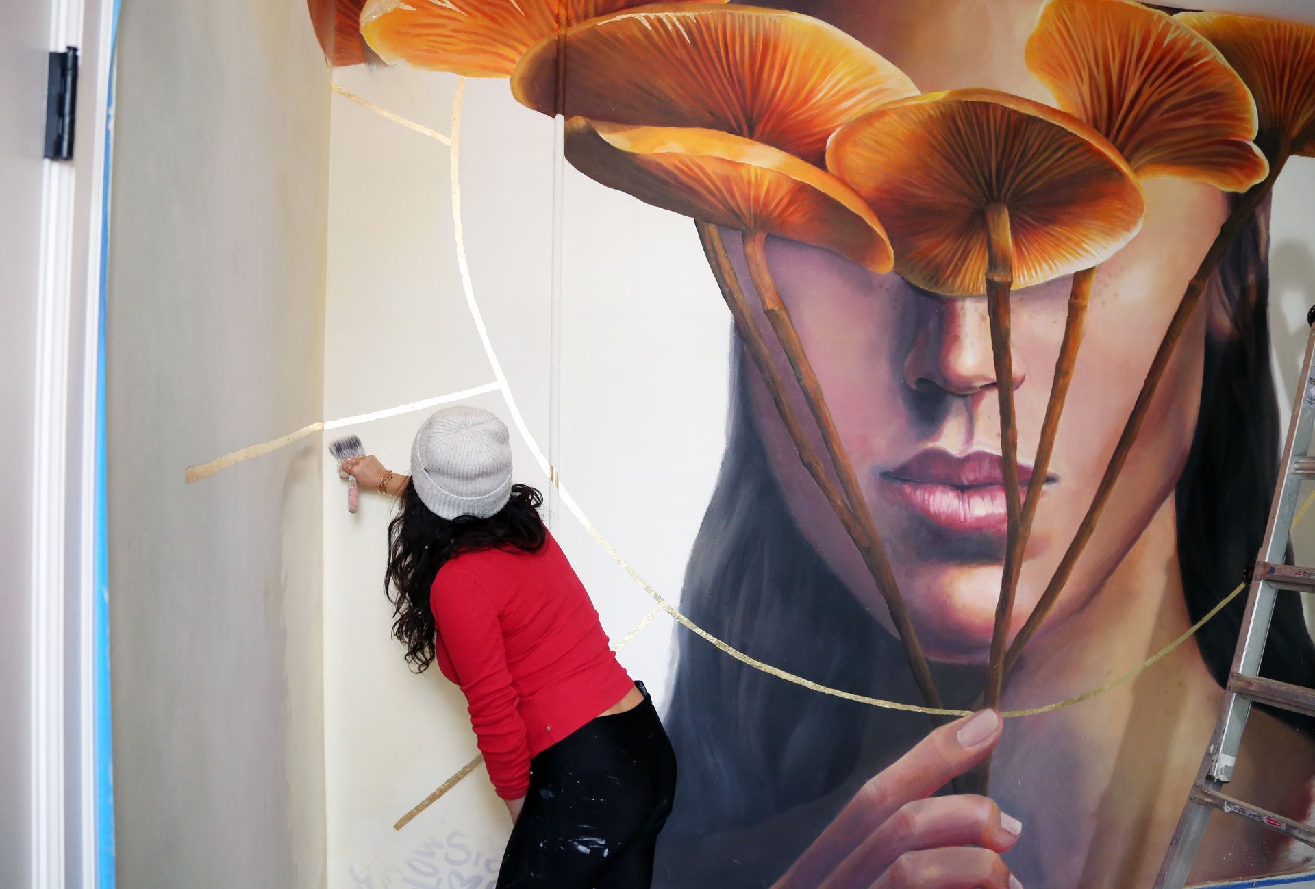 Grow Love, is a Denver-based artist, educator, and leader in the mural arts field. In 2018, Grow Love founded the organization Grow Love International whose mission is to support female and female identifying creatives with mentorship based career building and mural arts training. In 2019 co-founded the Babe Walls Mural Festival, which now operates as a non profit, collaborating with cities and communities on mural projects, educational programs, and mural arts career opportunities. In 2021 became a member of the Medusa Collective, an artist studio, gallery, and educational space, where they founded a youth lead program to support young artists in the community.
